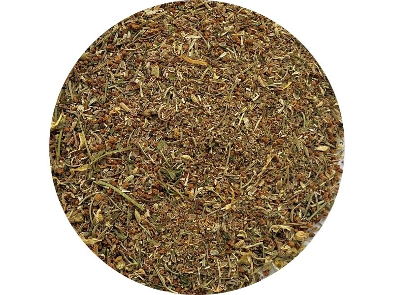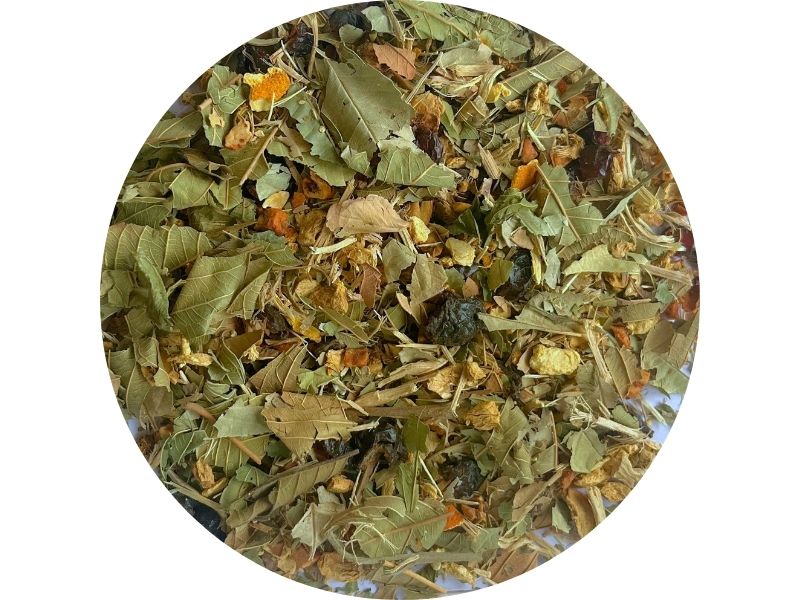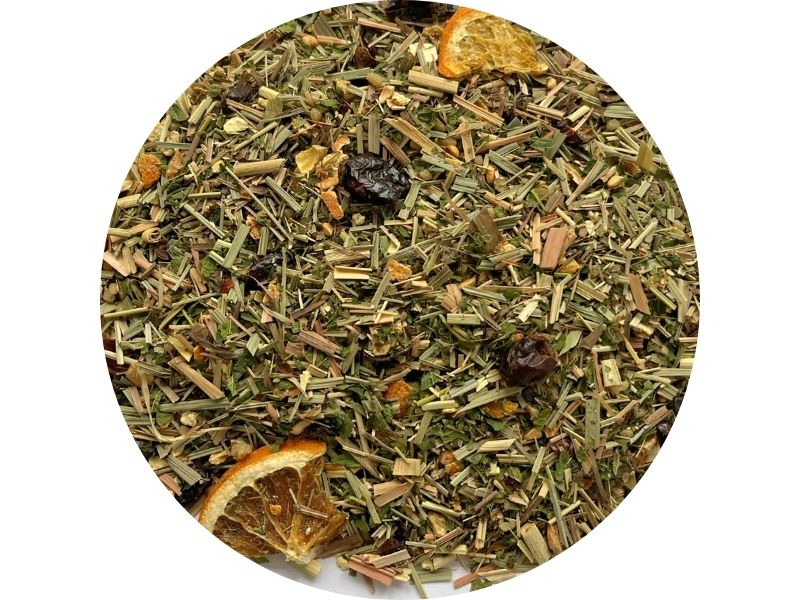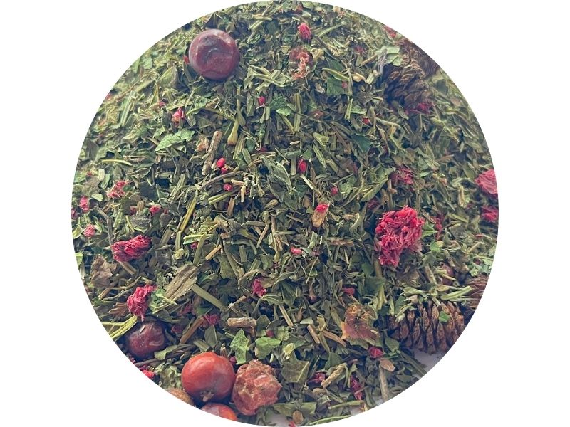 Плодово-ягодная смесь на основе кусочков яблока, ягод белого винограда и можжевельника, кардамона, кусочков корицы, сладкой стевии и хмеля. Приправляется мёдом или вином.